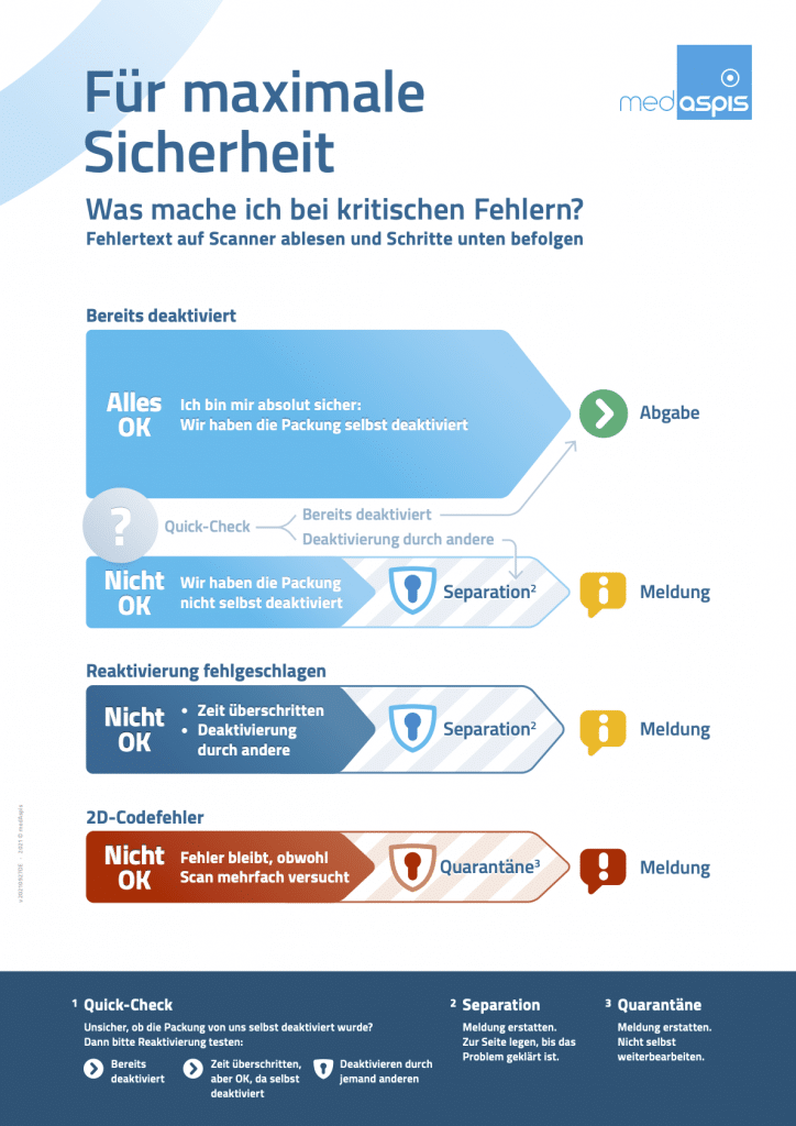 Zu allen Fehlermeldungen gibt es bei medAspis genaue Handlungsanweisungen. Damit können Sie alle Meldungen sicher bearbeiten.